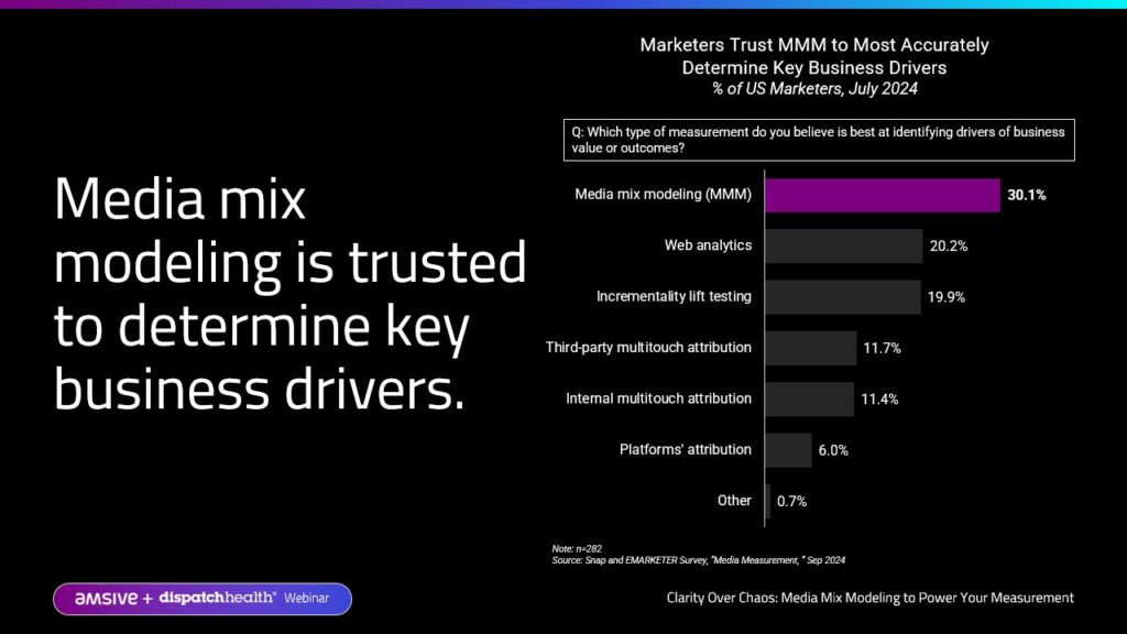 In this webinar, Amsive and DispatchHealth dive into the power of MMM as a cornerstone of effective measurement. Learn how it integrates with incrementality techniques and can help create a conscious measurement culture to maximize the impact of every dollar spent across all channels.
