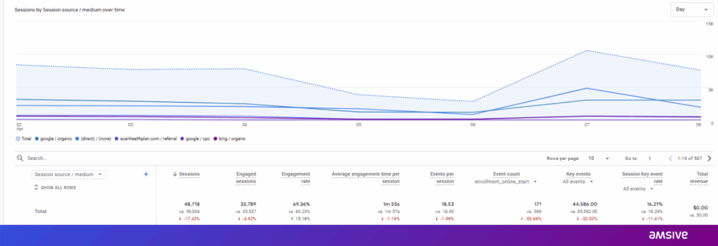 A healthcare brand’s paid media campaigns were fully paused for a little over a week. During the 10-day blackout, the lack of paid support led to immediate drops in performance.