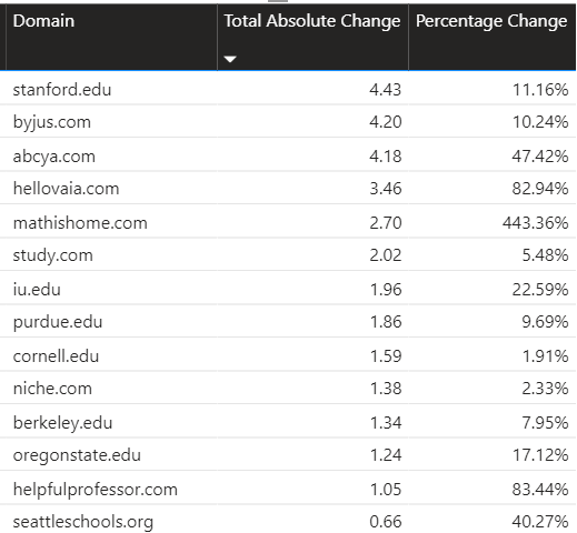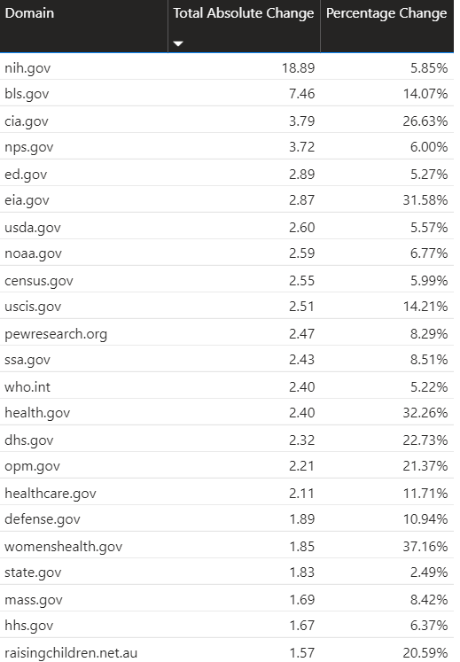 As is the case with many Google core updates, official government sites both from the U.S. as well as abroad saw massive increases in visibility resulting from this core update, with the NIH leading the pack (+18.89 points).