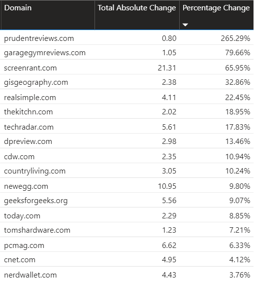 All of that said, looking at the performance of websites at scale after a core update can be illuminating to see if any patterns exist among winning or losing websites.