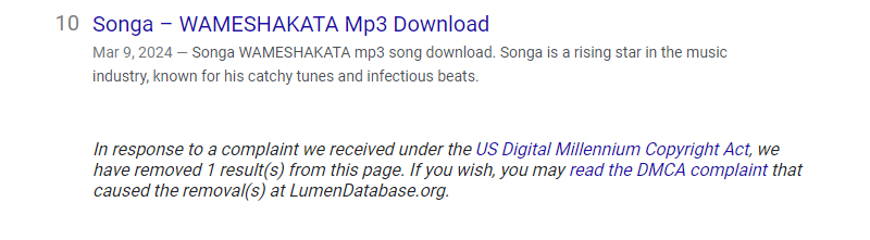 Some websites in this category also had some of their pages taken down due to copyright infringement, as shown below.