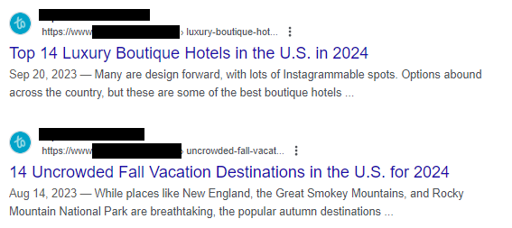 Though it appears that many of these sites are actively making changes to their sites, several are also attempting to artificially update dates in order to use “2024” in the title, despite being last updated in 2023 or earlier. This is a tactic listed in Google’s News and Discover manual actions referred to as “artificial refreshening,” and it was common among many websites hit by both the Helpful Content Update and the March Spam Updates.