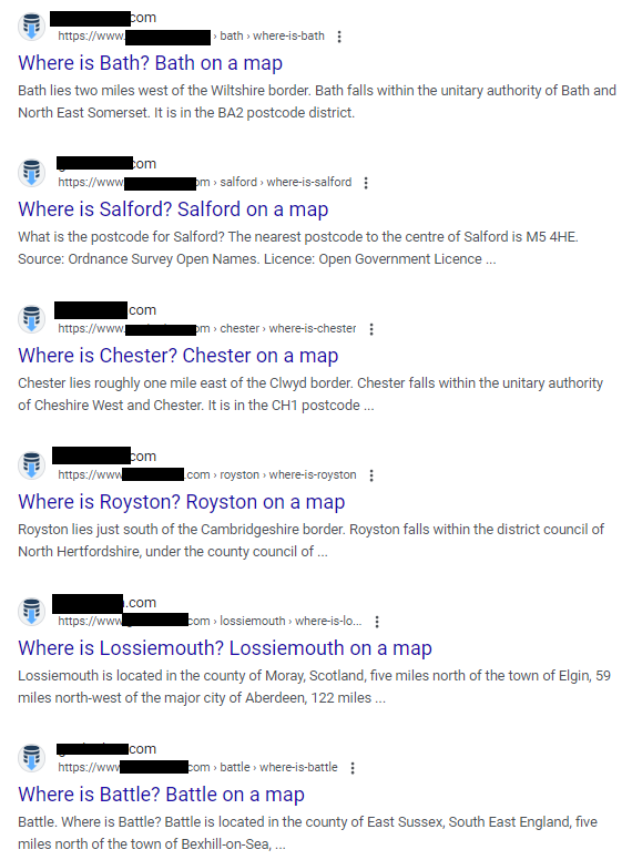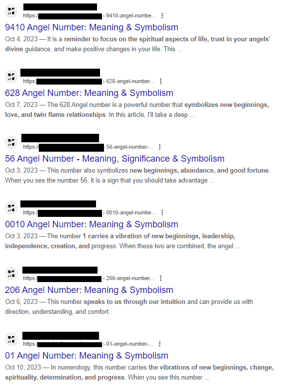 A site: search also revealed that many sites in this category seemed to be focused on using longtail keywords for ranking purposes, meaning more focus on driving traffic rather than providing value to users, as shown in the image below.