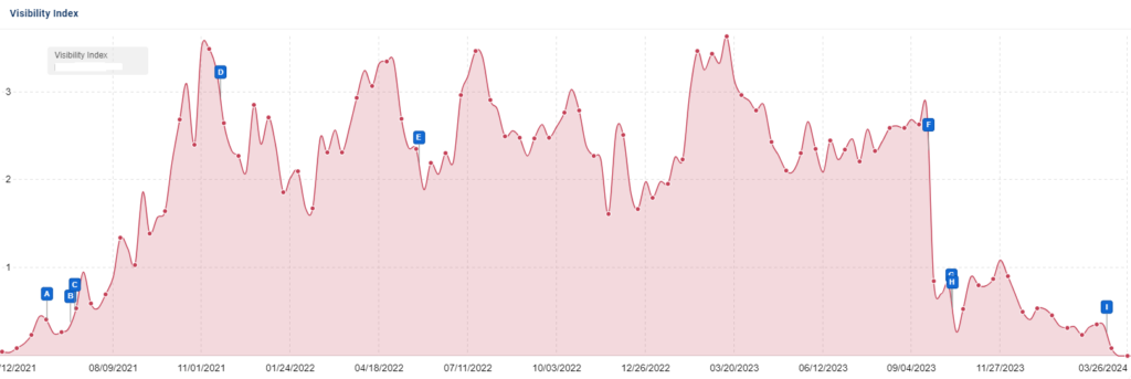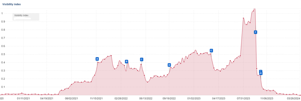 In September 2023, Google launched a major Helpful Content Update. This led to the extreme decline of many sites in various categories that lost upwards of 50% of their SEO visibility throughout the year.