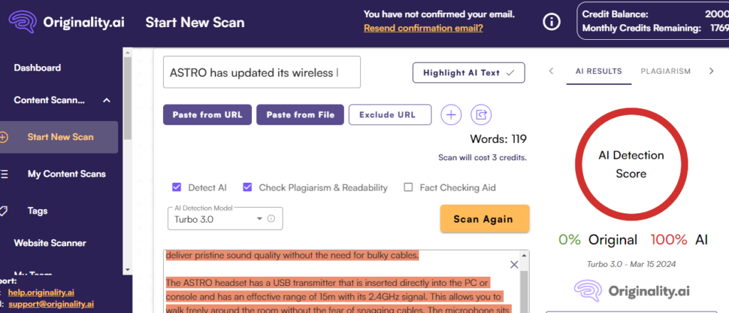 Many websites that saw significant negative impacts from the Helpful Content Update and March Spam Updates contained significantly thin and low-quality content. Running blocks of content from these sites through Originality.ai revealed that much of their content was AI-generated. Some sites showed a score of 100% AI-generated content for some of their review articles.