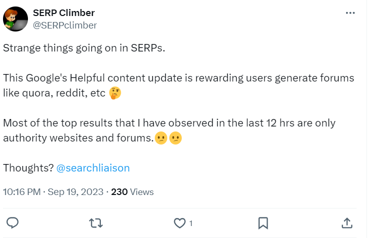 These changes did not go unnoticed. Around the time of the September Helpful Content Update, users began noticing an increase in the rankings of Reddit and other forums.