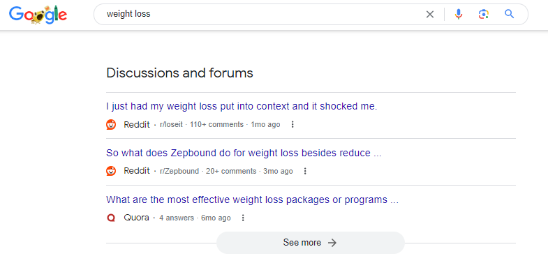 - Google shows the “Discussions and Forums” SERP feature when it is relevant to the search query