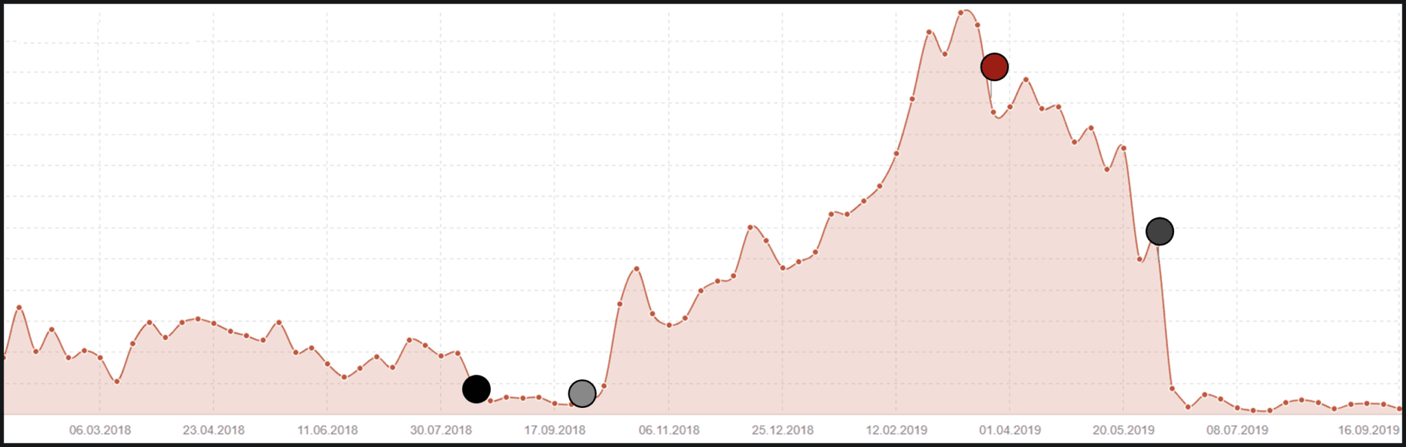 Here’s a few examples for illustration, using the legend on the left to indicate the major core algorithm updates: