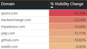 Several popular sites that rely on User-Generated Content (UGC) saw significant declines as a result of this update, such as Quora, Tripadvisor, Reddit, Yelp, and more.