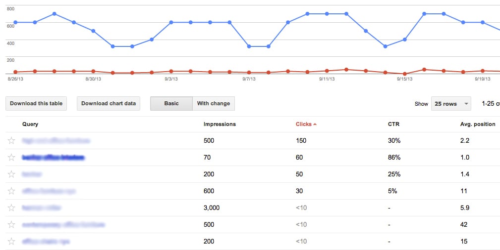 Site owners can also calculate organic keyword traffic estimates by correlating Google’s estimated keyword search volumes with current keyword rankings. In general, most search professionals base average organic search click-through rates on a 2011 Optify study that indicated an average CTR 36.4% for #1 ranked keywords (view the full CTR breakdown and commentary here).